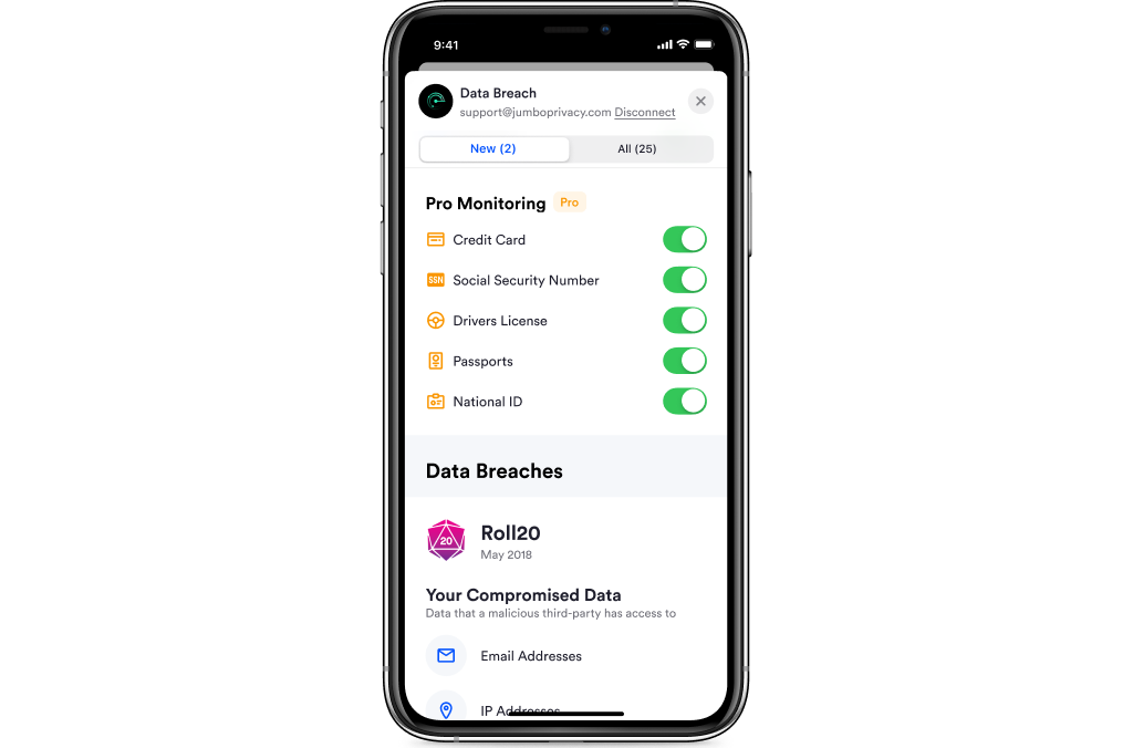 Additionally, with Jumbo Pro, Spycloud will monitor the dark web for breaches of your credit cards and your ID. For those in the US, your Social Security number will be monitored as well. This is more comprehensive protection that should give you additional peace of mind.