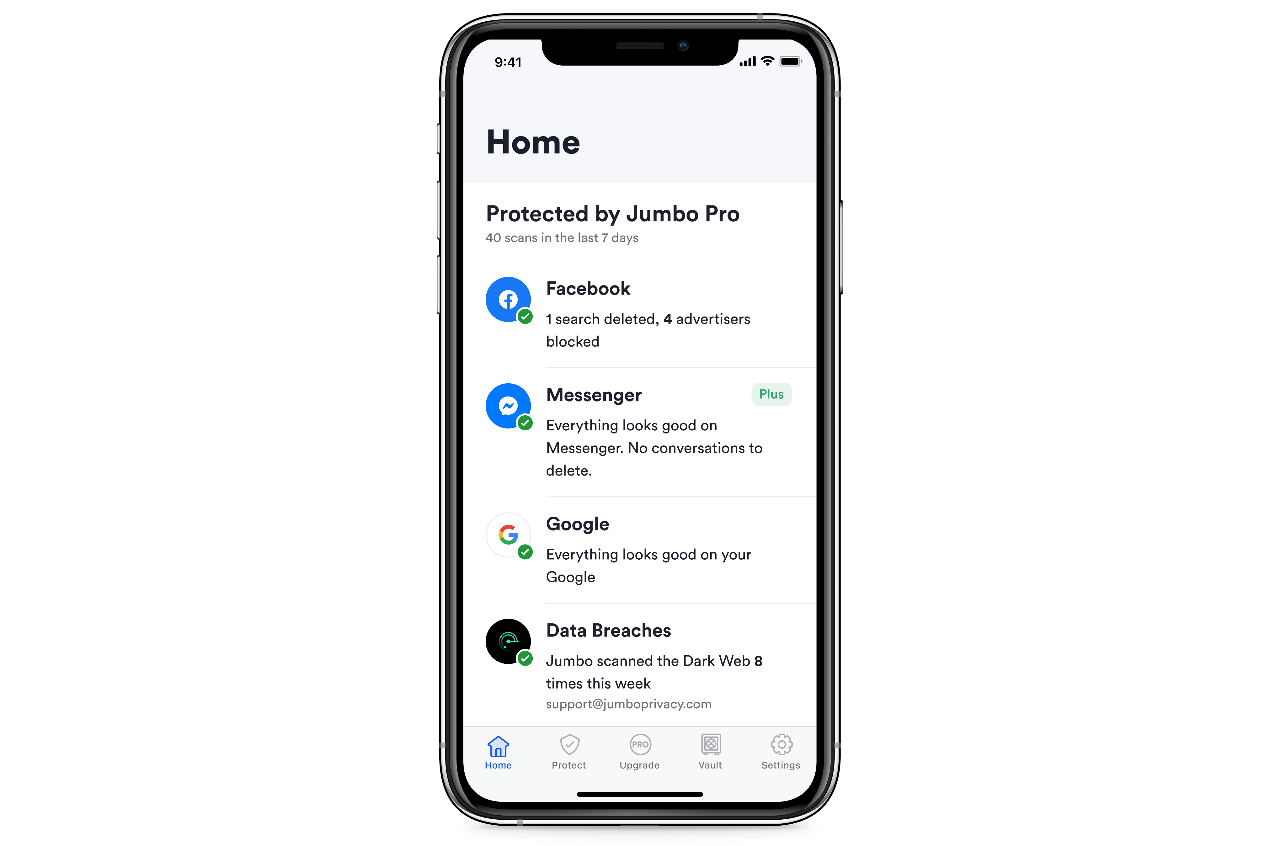 We don’t sell ads, so we don’t need you constantly opening up the app to spend time in it. We will notify you of the work Jumbo does in the background. But if you ever get curious, the Home tab is a quick way to see the work Jumbo is doing to protect you.